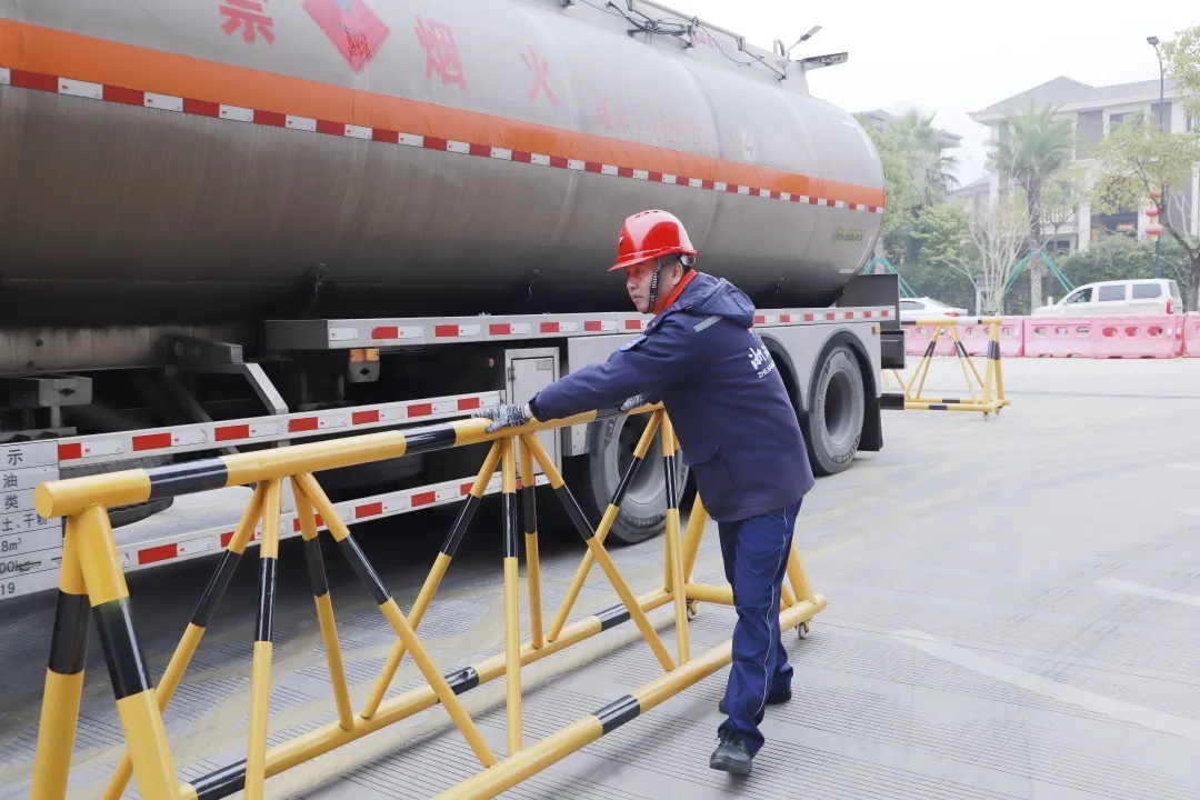 浙石(shi)油(you)溫(wen)州樂清云(yun)門站(zhan)站(zhan)經理錢小龍,做好隔離防護,確保(bao)卸油(you)安全。 鄭(zheng)藝帥 攝