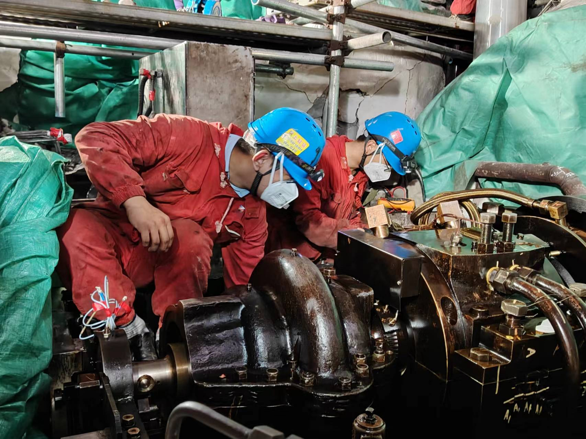 檢修陣地(di)上(shang)工(gong)程技術公司參修黨員勇當工(gong)程先鋒。 何(he)雪飛 攝