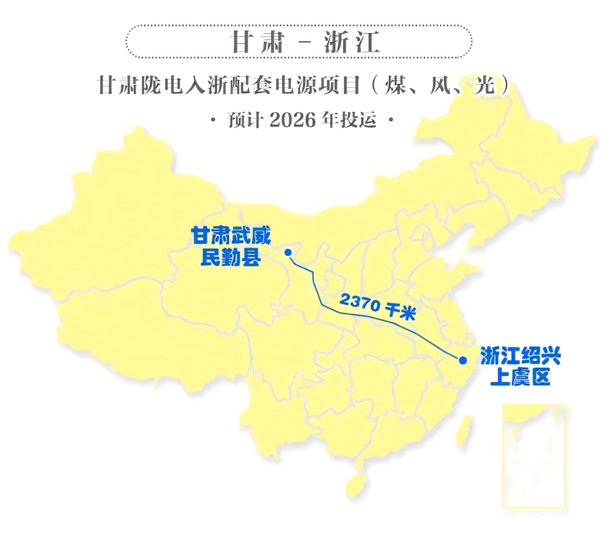 該工程動態(tai)投(tou)資約(yue)(yue)353億元,線路全(quan)長約(yue)(yue)2370千米,輸(shu)送容(rong)量(liang)800萬(wan)千瓦,計劃于2026年投(tou)運,是國家電(dian)網公(gong)司貫(guan)徹落實黨的二十屆三中全(quan)會(hui)精神,推(tui)動新(xin)型能(neng)(neng)(neng)源體系和(he)新(xin)型電(dian)力(li)系統建(jian)設的重(zhong)要舉(ju)措。項目(mu)還在甘肅(su)配套建(jian)設大(da)型能(neng)(neng)(neng)源基地,由浙能(neng)(neng)(neng)集團作(zuo)為浙江(jiang)方牽頭企業參與(yu)合(he)作(zuo)開發(fa),聚焦(jiao)高質(zhi)量(liang)能(neng)(neng)(neng)源保供和(he)高質(zhi)量(liang)綠色轉型兩(liang)大(da)核心任務,做強做優做大(da)能(neng)(neng)(neng)源“地瓜經濟”,屆時(shi)每年將有約(yue)(yue)360億千瓦時(shi)的電(dian)量(liang)送往浙江(jiang)。