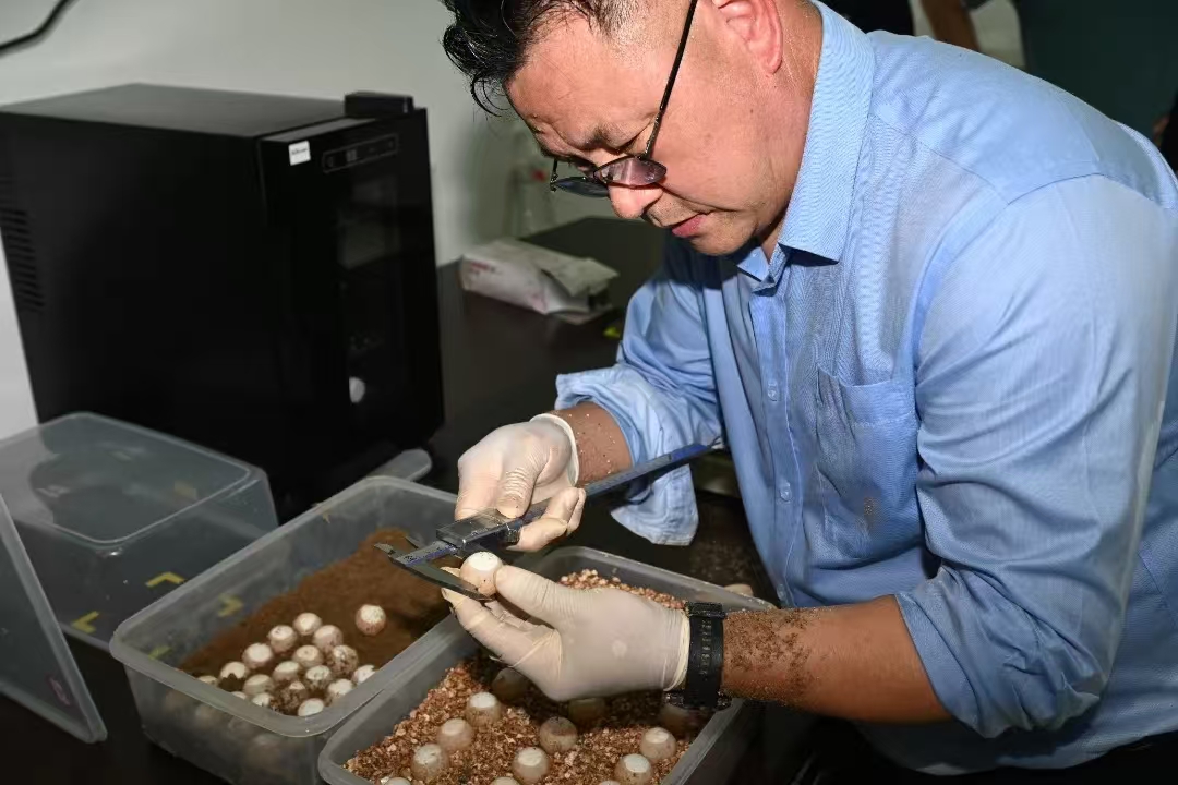 葉承義正(zheng)在對黿卵進行操作。 青田傳媒集團(tuan) 提(ti)供