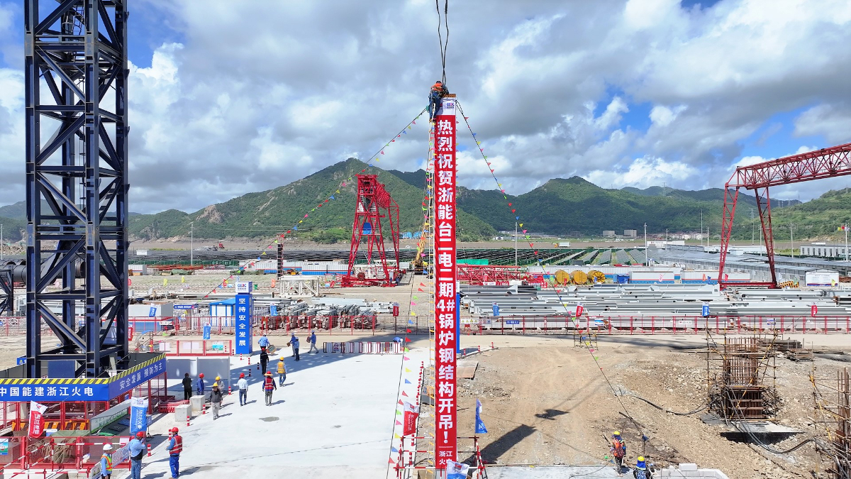 高質量發展看“浙”里 | 臺二電二期4號鍋爐首根鋼結構開吊