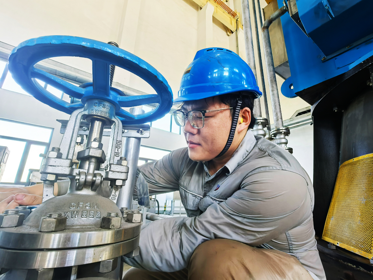 樂電汽機(ji)班張皓(hao)杰在循泵房開(kai)展(zhan)閥門檢修作業。 陳清瑜 攝(she)