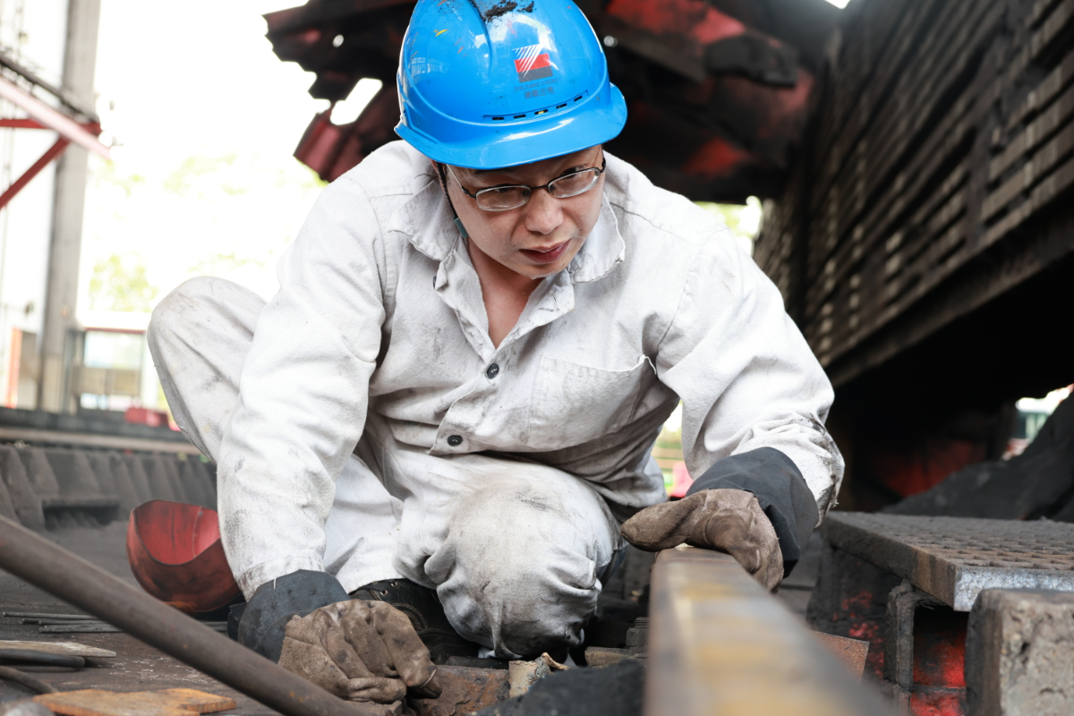 “撬棍再壓下來(lai)點,再加一(yi)塊墊(dian)片試試。”在(zai)(zai)蘭溪發電公(gong)司翻車機(ji)房,陣陣熱(re)浪(lang)撲面而來(lai),身著(zhu)(zhu)白(bai)色焊工服的褚建華剛到(dao)現(xian)場便(bian)急(ji)著(zhu)(zhu)俯身趴在(zai)(zai)翻車機(ji)活動軌道上(shang)反(fan)復查看,不(bu)(bu)一(yi)會身上(shang)、帽(mao)子上(shang)便(bian)蹭上(shang)了(le)許多煤粉,臉上(shang)的汗水(shui)“嗒嗒”地(di)滴落在(zai)(zai)滾燙的鐵軌上(shang)迅速蒸發,他(ta)(ta)的眼(yan)睛卻只是直直地(di)盯著(zhu)(zhu)軌道,不(bu)(bu)停地(di)對軌道高(gao)度做著(zhu)(zhu)調整,拆解螺栓、撬動軌道、電焊加固……一(yi)套操作下來(lai),他(ta)(ta)已(yi)俯身在(zai)(zai)地(di)一(yi)個(ge)多小時(shi)了(le),終于趕在(zai)(zai)煤車翻卸(xie)前(qian)完成了(le)任務。他(ta)(ta)說,“熱(re)點、累(lei)點都(dou)在(zai)(zai)其次,外(wai)面煤車這么(me)多,我們可不(bu)(bu)能(neng)掉鏈子。在(zai)(zai)關鍵時(shi)期(qi),設備安穩(wen)了(le),我們心里才(cai)踏實。”