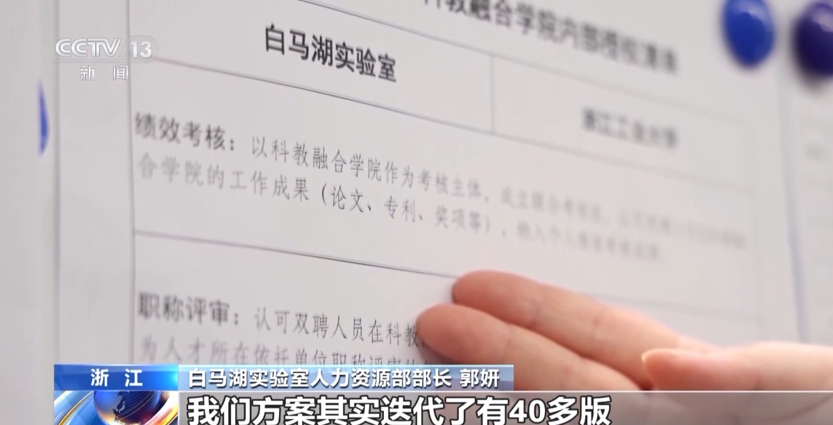 編者按(an):8月24日,由中央(yang)電(dian)視(shi)臺新聞頻道(dao)和(he)綜合(he)頻道(dao)并(bing)機播出的(de)《新聞30分》欄目“錨定(ding)現(xian)代化(hua) 改革(ge)再深化(hua)”系列報道(dao)聚焦浙(zhe)江一(yi)體(ti)推進教育(yu)科技人(ren)才(cai)建(jian)設。浙(zhe)能集團(tuan)領(ling)建(jian)的(de)白(bai)馬湖(hu)實(shi)驗(yan)室(shi)教科人(ren)一(yi)體(ti)化(hua)發展(zhan)工作登(deng)上本期報道(dao),央(yang)視(shi)記者與實(shi)驗(yan)室(shi)中一(yi)批具有“雙(shuang)重身份”的(de)科研人(ren)員(yuan)展(zhan)開對話,帶領(ling)全(quan)國觀眾深入(ru)了解(jie)實(shi)驗(yan)室(shi)靈活用才(cai)推進人(ren)才(cai)建(jian)設的(de)情況。