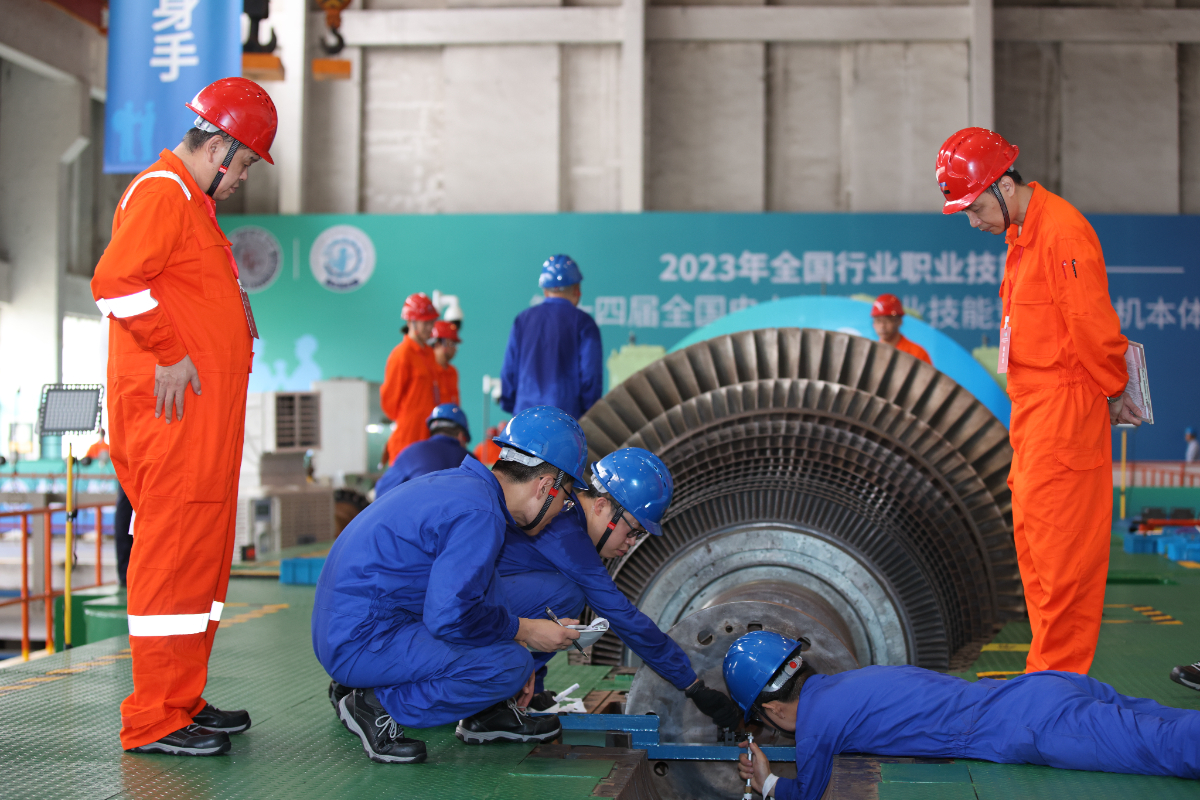 去年9月,首屆全國汽(qi)機本體檢修(xiu)工(gong)職業技(ji)能競賽(sai)在浙能鎮(zhen)海發電(dian)舉行(xing),參賽(sai)選(xuan)手正在進行(xing)隔(ge)板(ban)洼窩中心測調項目比賽(sai)。 鎮(zhen)海發電(dian)公司 提供