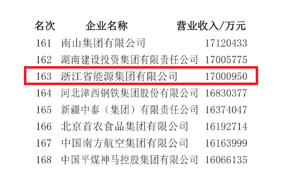浙能集團榮列“2024中國500強企業”第163位