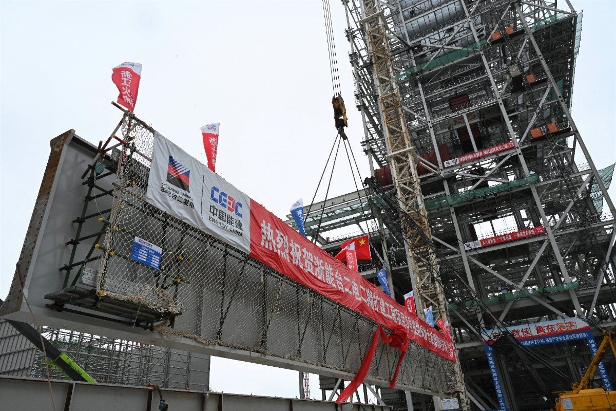 臺二電二期3號鍋爐首根大板梁吊裝就位