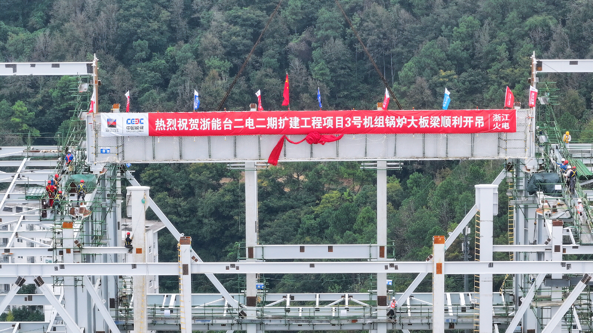 臺二電(dian)二期3號鍋爐首根大板梁吊裝(zhuang)就位。 俞琬 提供