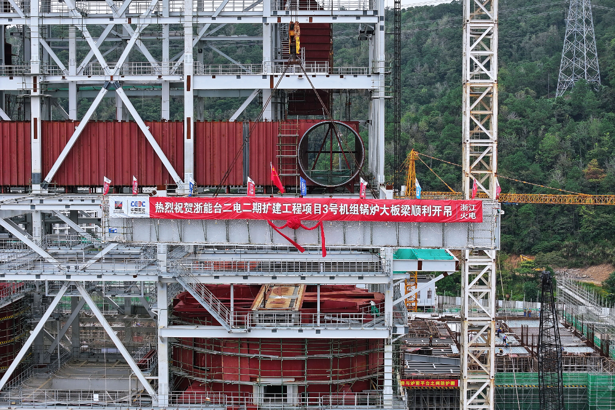 奮戰金秋,重大(da)能源項(xiang)目建設(she)迎來新(xin)“豐(feng)收(shou)”。10月(yue)25日,浙能臺二電二期(qi)擴建工(gong)程(cheng)3號(hao)機(ji)組鍋(guo)(guo)爐(lu)首(shou)根大(da)板梁順利(li)吊裝就位,標(biao)志著該機(ji)組鍋(guo)(guo)爐(lu)鋼(gang)結構主體框架趨于(yu)完工(gong),將進入鍋(guo)(guo)爐(lu)受(shou)熱面(mian)設(she)備安裝施(shi)工(gong)階段(duan)。