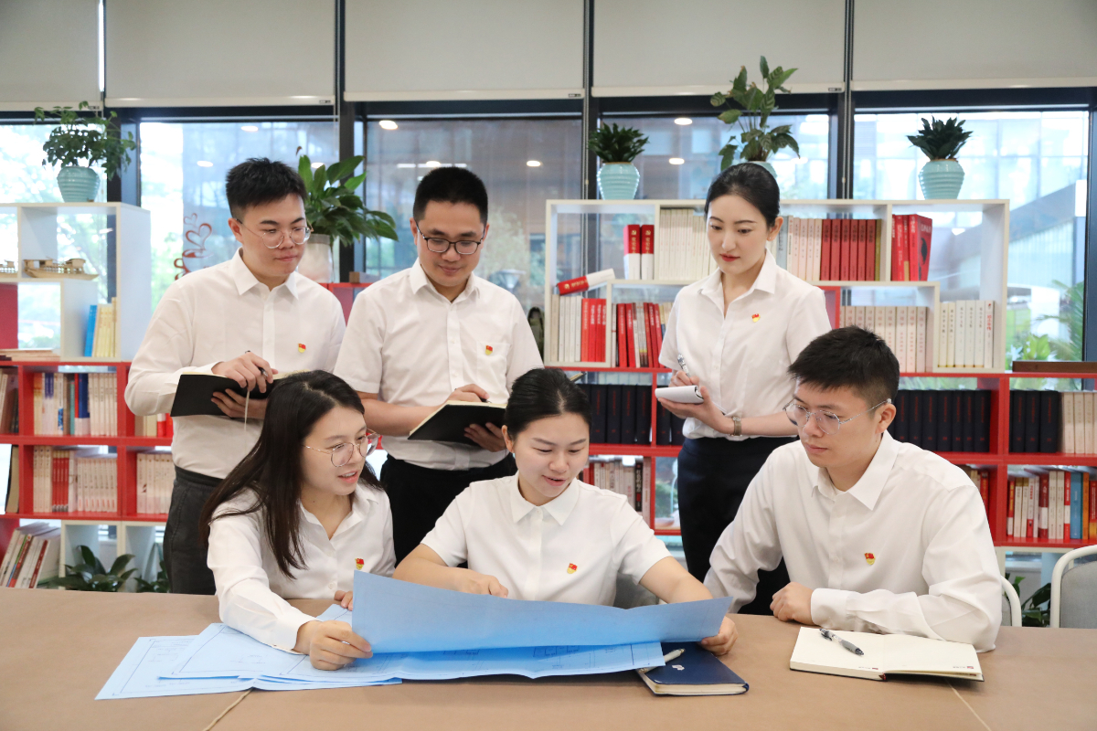 03-銅獎項目-浙(zhe)江浙(zhe)能科技(ji)環保集團(tuan)股份有限公司的(de)《“蓄式(shi)”而(er)發,點“燃”高質量(liang)發展新引攀——高效RTO技(ji)術在(zai)能源化工工程的(de)應用與示范》青創團(tuan)隊成員們正在(zai)進行項目研討。 張(zhang)琪 提供