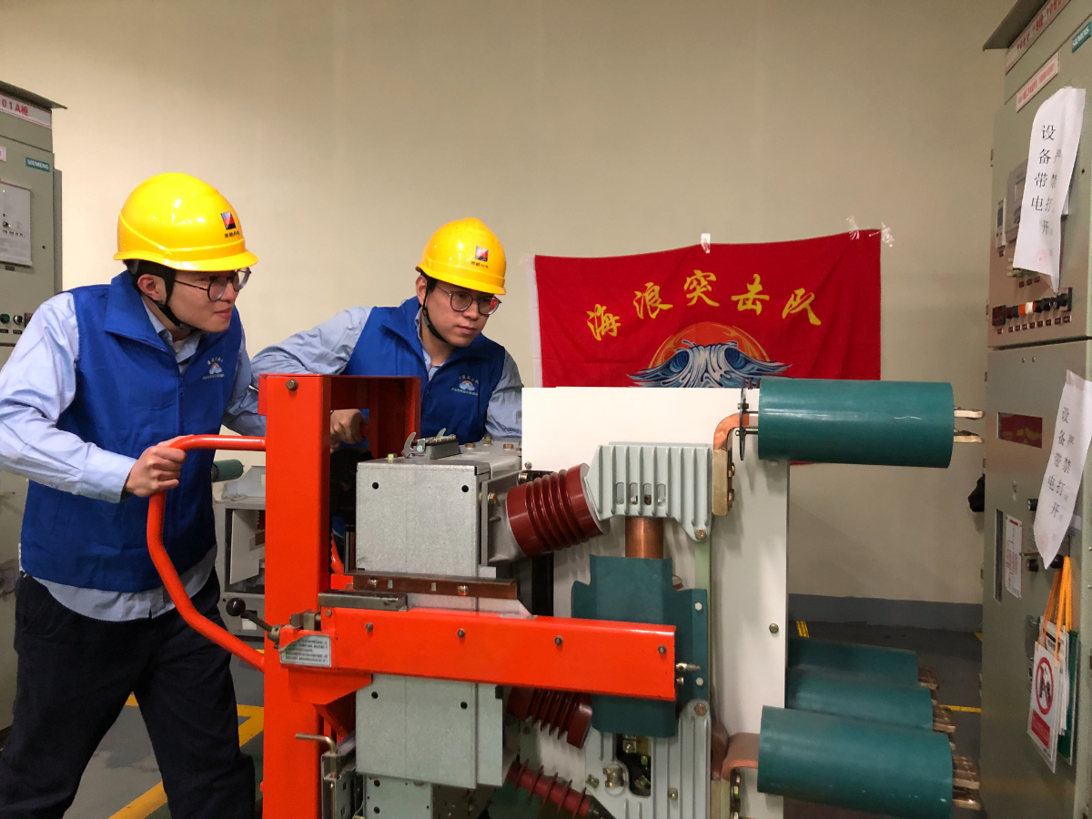 舟(zhou)山(shan)煤電1號(hao)機C修現場,“海浪突擊(ji)隊(dui)”成(cheng)員(yuan)協(xie)助隔離組完成(cheng)10千伏母線1B段復(fu)役工作。 鄒咪(mi)(mi)咪(mi)(mi) 提供