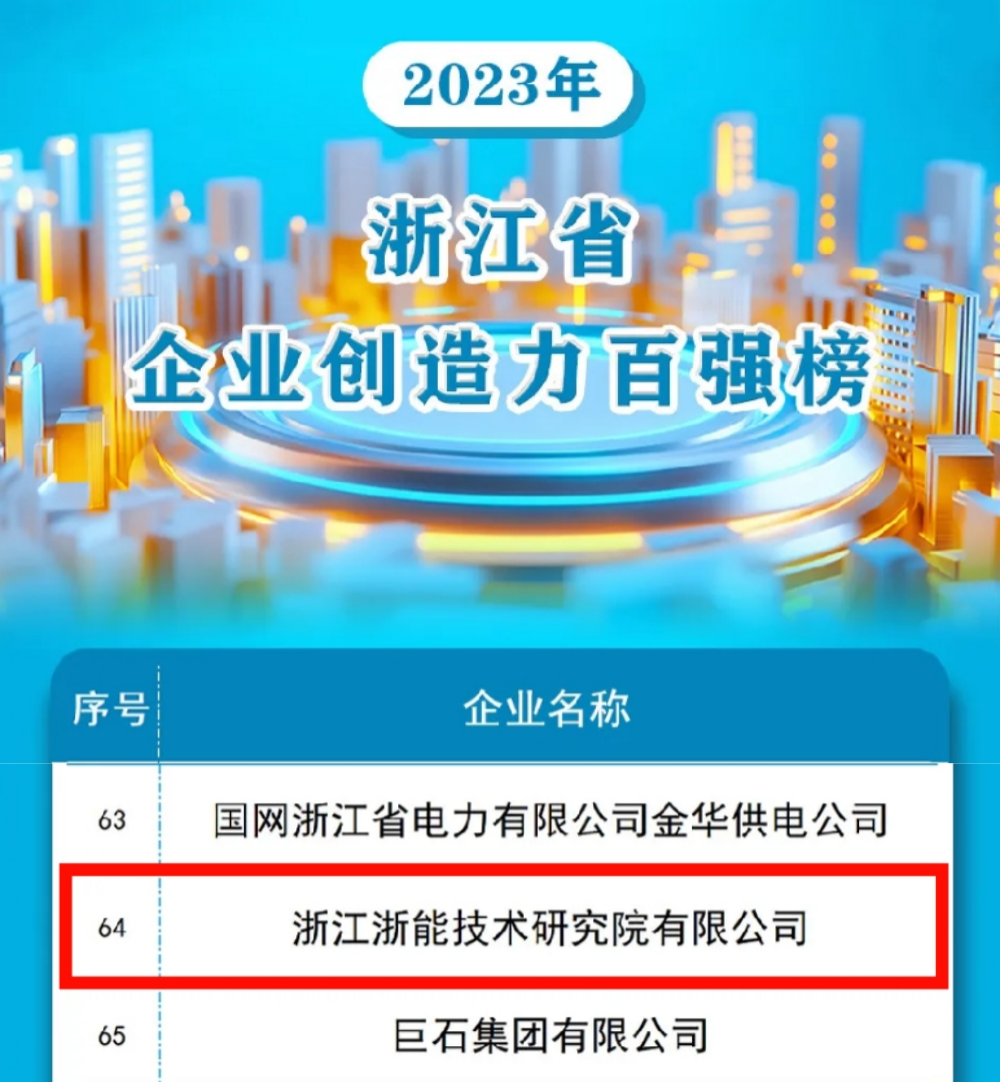 浙能技術研究院榮登浙江省企業創造力百強榜