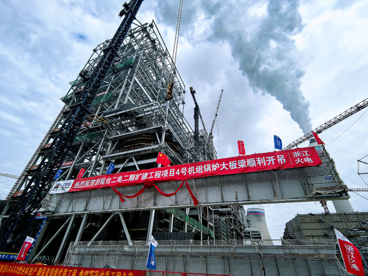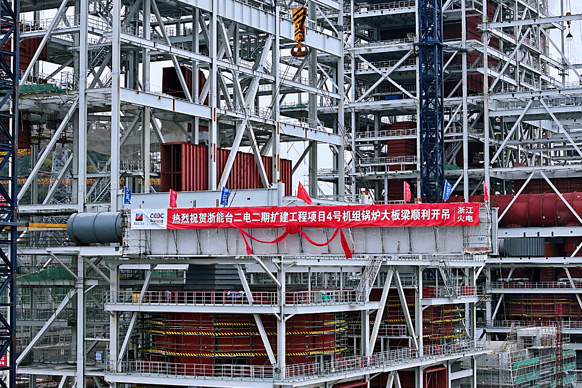 高質量發展看“浙”里|臺二電二期擴建工程項目4號鍋爐首根大板梁吊裝就位