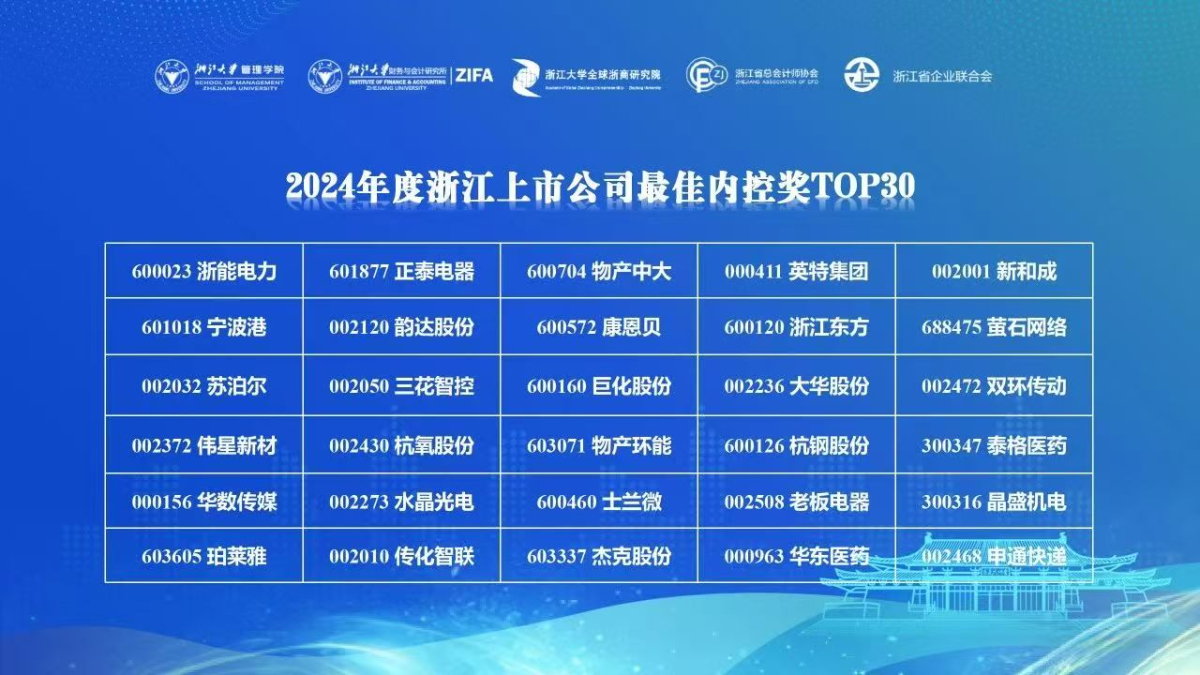 浙能電力榮膺2024年度浙江上市公司最佳內控獎榜首