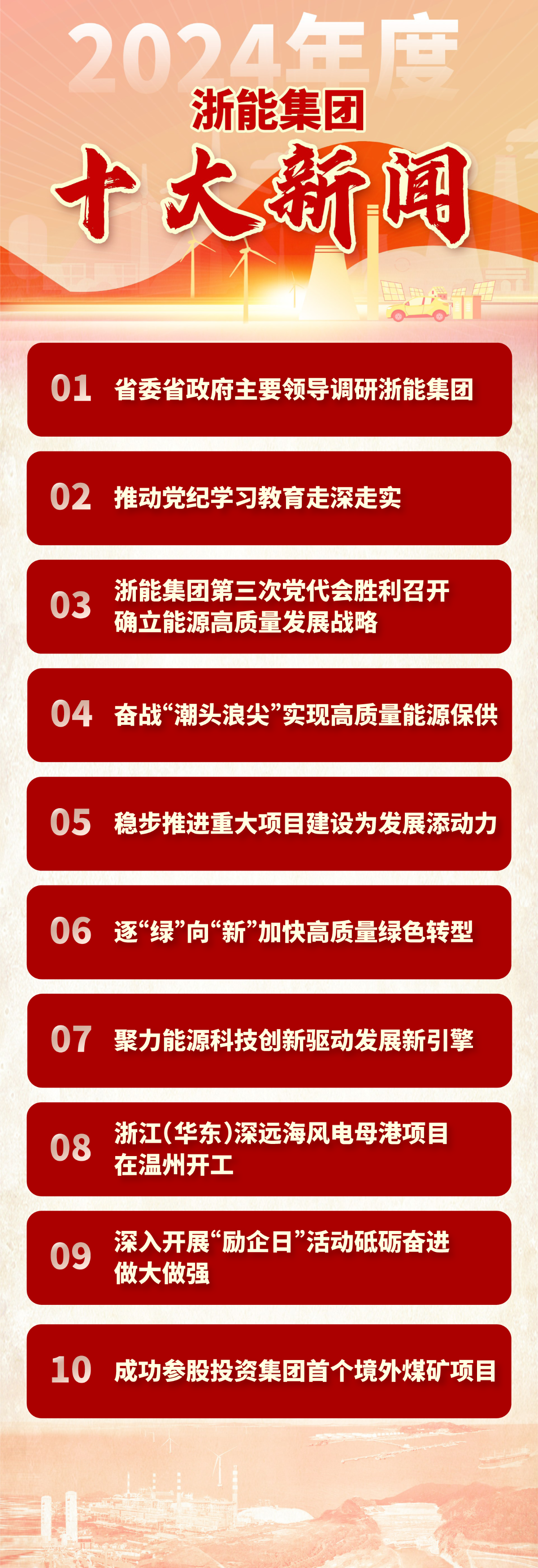 本網訊 日前(qian),浙(zhe)(zhe)能(neng)集團政治(zhi)工作部(新(xin)聞中心)發起“2024年(nian)(nian)度浙(zhe)(zhe)能(neng)集團十(shi)大新(xin)聞”評(ping)選活動,得到了廣大職工的關注支持。經綜合評(ping)定,現正式揭(jie)曉“浙(zhe)(zhe)能(neng)集團2024年(nian)(nian)度十(shi)大新(xin)聞”。