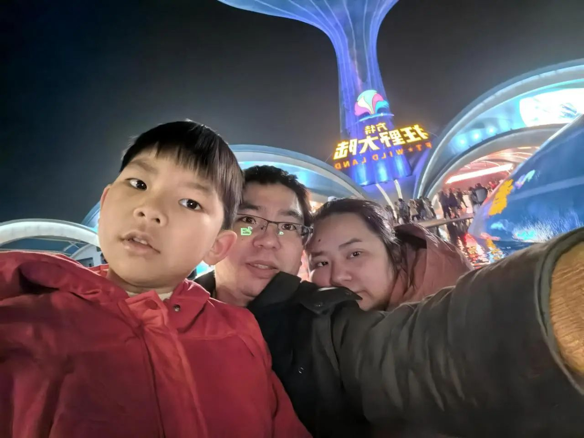 帶大兒(er)子在臺(tai)州(zhou)方特樂園游玩,中間為張(zhang)勤,右為張(zhang)勤愛人(ren)。 臺(tai)二(er)電 提(ti)供