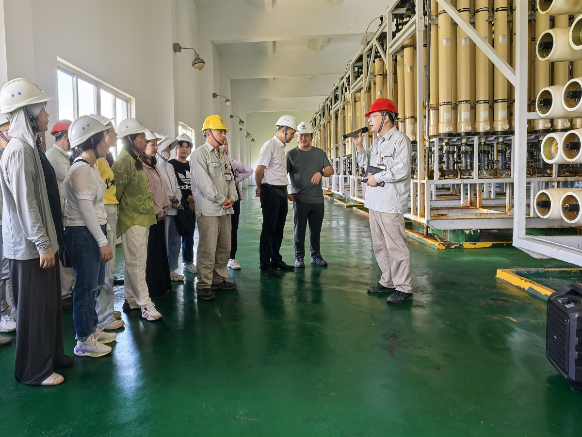 浙能樂(le)電為樂(le)清(qing)市(shi)生(sheng)態環(huan)境分局及(ji)南岳代(dai)表(biao)講解海水淡(dan)化運(yun)作成效。 浙能樂(le)電 提(ti)供