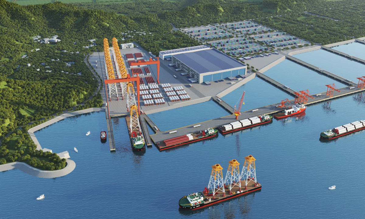 浙江(華東(dong))深遠海(hai)風(feng)電母(mu)港(核心區)一(yi)期工程(cheng)效果圖。 省海(hai)風(feng)公司 提供