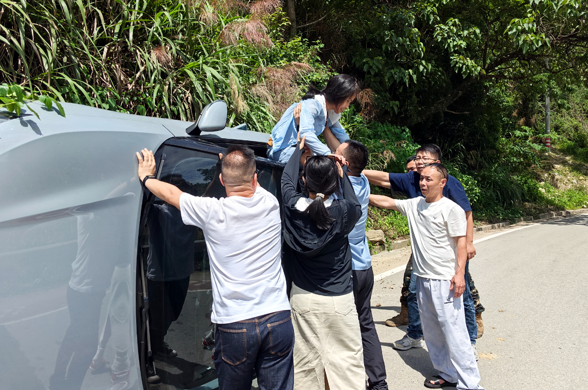 據浙石油(you)銷(xiao)售公司幾名員工回憶,見前(qian)方有(you)事(shi)(shi)故(gu)發生,他(ta)們立(li)即下車,分(fen)工展(zhan)開救(jiu)援(yuan)。一人(ren)立(li)即撥打120急救(jiu)和110報(bao)警(jing)電話,精準報(bao)告事(shi)(shi)故(gu)地點(dian)及現場狀況,并在事(shi)(shi)故(gu)后(hou)方設置警(jing)示標志、疏導(dao)交通,防止發生二(er)次事(shi)(shi)故(gu);其(qi)余人(ren)員沖(chong)向事(shi)(shi)故(gu)車輛,安撫(fu)受(shou)困母(mu)女(nv)情緒(xu),并協助(zhu)她們安全爬出車窗。隨后(hou),員工們將脫困母(mu)女(nv)轉移至安全區域,待120急救(jiu)車抵達(da)后(hou),協助(zhu)醫(yi)護(hu)人(ren)員送醫(yi),向交警(jing)說(shuo)明情況后(hou)才離開。