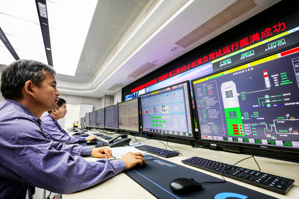 浙(zhe)能濱海熱(re)電運行操(cao)作(zuo)員在項目(mu)9號機組168試運行期間認真(zhen)監盤。 徐明敏 攝(she)