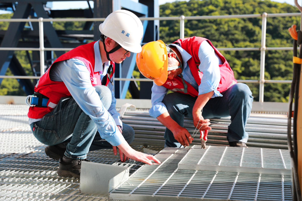 浙江電(dian)建安全員(yuan)檢查鍋爐平臺鋼(gang)格柵加固情況。 張曉艷 攝