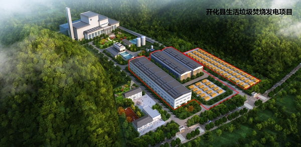 開化縣生活垃圾焚燒發電項目位于開化縣華埠鎮楊村工業園區二期地塊,距離縣城約21公里,項目建設規模為生活垃圾焚燒發電處理能力為600噸/天,生物質處理能力為200噸/天,污泥干化處理能力為40噸/天,餐廚垃圾處理能力為20噸/天,分兩期建設。其中一期工程設計生活垃圾焚燒發電處理能力為300噸/天,污泥干化處理處理能力為20噸/天,餐廚垃圾處理能力為10噸/天,配套建設一套1*6兆瓦凝汽式汽輪發電機組,一套煙氣凈化系統及配套輔助設施。