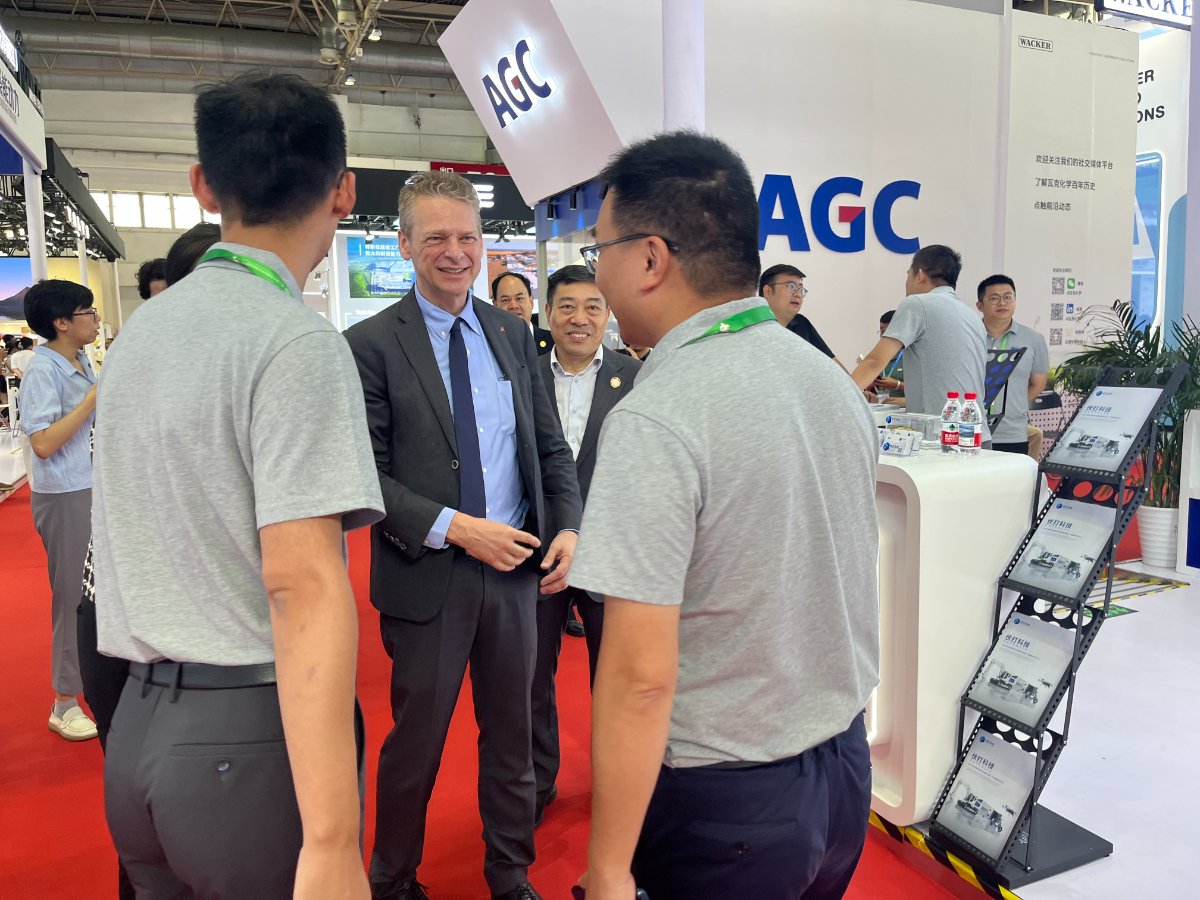 奧地利駐華使(shi)館(guan)商(shang)務(wu)處商(shang)務(wu)參(can)贊樂思(si)華,ADVANTAGE AUSTRIA Beijing (Austrian Embassy Commercial Section), Commercial Counselor Franz Roessler參(can)觀伏打(da)科技展臺。 高明娟 提供(gong)