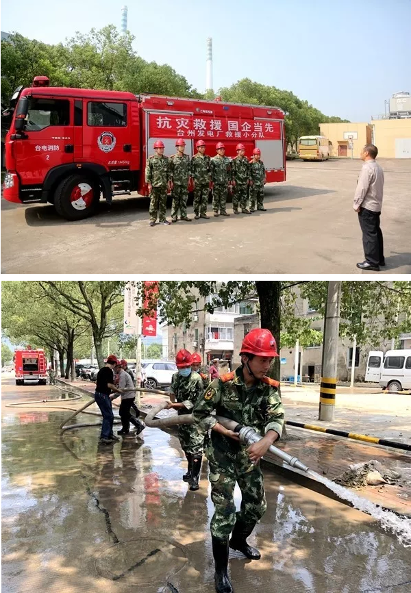 8月13日一早,浙能臺州發電廠派出第二批救援人員向救災地點集結。汪舜檀 婁正灶 攝