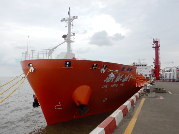▲ 9月14日,載運1.1萬噸0號柴油的“浙能油1”輪順利完成重載首航