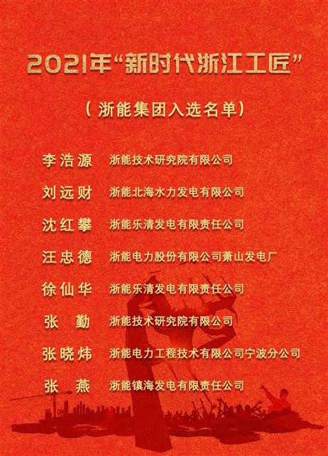 浙(zhe)能(neng)集團所屬紹興(xing)濱(bin)海(hai)熱電公司被授予2021年全國五一勞動獎狀,浙(zhe)能(neng)所屬企業(ye)的(de)8名員(yuan)工獲2021年“新時代浙(zhe)江工匠”榮譽稱號。