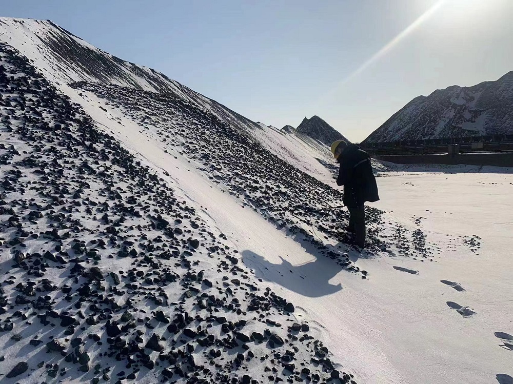 寒潮期間(jian),浙能富興(xing)燃料公司北方辦工作人員日常巡查場地。 趙洪(hong)偉 攝(she)