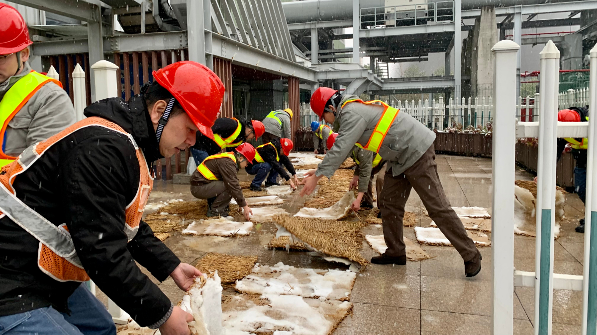 12月18日下午,浙能長興發(fa)電公(gong)司燃機項目(mu)部(bu)黨員志愿者(zhe)冒著(zhu)風雪(xue)在廠(chang)區主干道鋪設防滑草(cao)墊,保障生產安全。 位亞飛 攝(she)