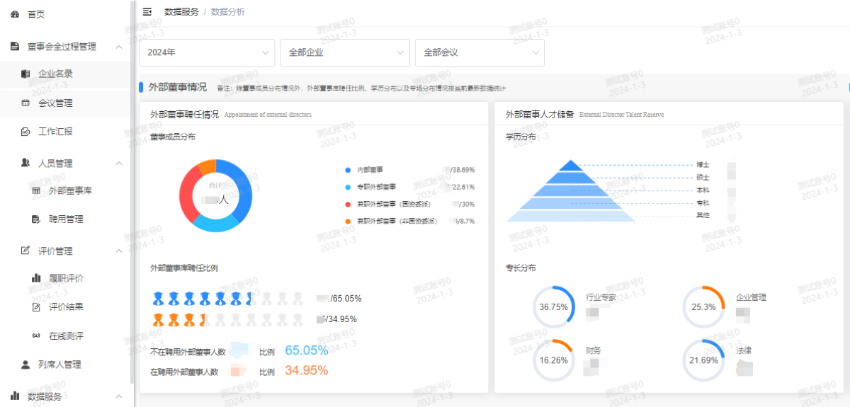 董(dong)(dong)事會(hui)(hui)(hui)運(yun)行管理系統按省國(guo)資(zi)委管理要求(qiu)研發部署(shu),依據(ju)(ju)國(guo)資(zi)監管機構要求(qiu)與(yu)企(qi)業章程,結合(he)企(qi)業發展(zhan)戰(zhan)略和業務特點(dian),形成外(wai)部董(dong)(dong)事多維度畫像,深(shen)化(hua)預(yu)(yu)警提醒,前(qian)移監督(du)關口(kou),可視(shi)化(hua)呈現(xian)各(ge)企(qi)業董(dong)(dong)事會(hui)(hui)(hui)建(jian)設、外(wai)部董(dong)(dong)事人(ren)才儲(chu)備等情況,實(shi)現(xian)預(yu)(yu)警在先、監督(du)有形,助力董(dong)(dong)事會(hui)(hui)(hui)規(gui)范(fan)性(xing)建(jian)設更高效、更智能(neng)。截(jie)至2023年底,董(dong)(dong)事會(hui)(hui)(hui)運(yun)行管理系統已(yi)覆蓋省國(guo)資(zi)委及16家省屬企(qi)業,累計錄入(ru)千(qian)余(yu)條會(hui)(hui)(hui)議(yi)數據(ju)(ju)與(yu)相關董(dong)(dong)事會(hui)(hui)(hui)議(yi)題(ti)數據(ju)(ju),以(yi)及百余(yu)條外(wai)部董(dong)(dong)事履職數據(ju)(ju),兼職外(wai)部董(dong)(dong)事庫中(zhong)擁有百余(yu)位人(ren)才儲(chu)備。系統從使用(yong)便(bian)捷性(xing)、數據(ju)(ju)準確性(xing)和數據(ju)(ju)實(shi)用(yong)性(xing)三方(fang)面著手,打造“好(hao)用(yong)、實(shi)用(yong)、管用(yong)”的董(dong)(dong)事會(hui)(hui)(hui)運(yun)行管理數字化(hua)應(ying)用(yong)。