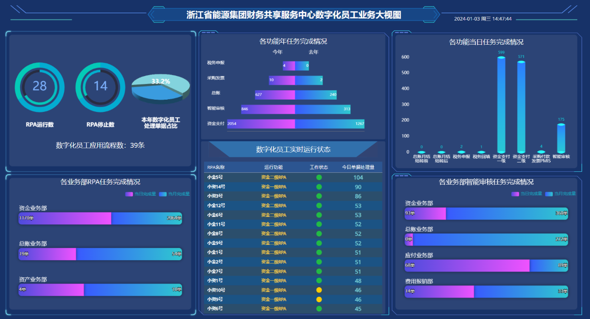 浙能(neng)(neng)(neng)(neng)財(cai)務共享(xiang)運營平臺(tai)上線以(yi)來已推(tui)廣21批(pi)線上運行427家單(dan)(dan)位,開發129支標準化(hua)(hua)(hua)流(liu)程(cheng)(cheng),與SAP等20個業財(cai)系(xi)統(tong)實現(xian)集成(cheng),覆(fu)蓋用(yong)戶3萬余人,從(cong)無(wu)到有打造以(yi)智(zhi)(zhi)能(neng)(neng)(neng)(neng)化(hua)(hua)(hua)、流(liu)程(cheng)(cheng)和(he)(he)數(shu)據(ju)驅動、業財(cai)稅資檔一體貫通、財(cai)務風險(xian)控制(zhi)和(he)(he)財(cai)務人才培養為主,富(fu)有浙能(neng)(neng)(neng)(neng)特(te)色、不(bu)斷迭(die)代升級、賦能(neng)(neng)(neng)(neng)價(jia)值創(chuang)造的財(cai)務共享(xiang)金名(ming)片,走在浙江國(guo)資國(guo)企前列。在數(shu)智(zhi)(zhi)化(hua)(hua)(hua)方(fang)面,該平臺(tai)采用(yong)統(tong)一架(jia)構(gou)的端到端數(shu)字化(hua)(hua)(hua)平臺(tai),利用(yong)IPA智(zhi)(zhi)能(neng)(neng)(neng)(neng)流(liu)程(cheng)(cheng)自(zi)動化(hua)(hua)(hua)、OCR智(zhi)(zhi)能(neng)(neng)(neng)(neng)審(shen)核、AI、NLP自(zi)然語言處理、全(quan)場景遠程(cheng)(cheng)辦(ban)公等先進技術(shu)手(shou)段(duan),搭建(jian)起流(liu)程(cheng)(cheng)、審(shen)核、運營和(he)(he)數(shu)治四個方(fang)面組成(cheng)的智(zhi)(zhi)能(neng)(neng)(neng)(neng)應用(yong)體系(xi),實現(xian)憑證(zheng)和(he)(he)支付自(zi)動化(hua)(hua)(hua)率雙雙超過(guo)99%,其中數(shu)字員工、數(shu)字化(hua)(hua)(hua)監督看板、智(zhi)(zhi)能(neng)(neng)(neng)(neng)語音提單(dan)(dan)、智(zhi)(zhi)能(neng)(neng)(neng)(neng)派單(dan)(dan)、智(zhi)(zhi)能(neng)(neng)(neng)(neng)客服(fu)等一批(pi)功能(neng)(neng)(neng)(neng)應用(yong)頗(po)具特(te)色、業內領先,榮獲上國(guo)會“2022年(nian)智(zhi)(zhi)能(neng)(neng)(neng)(neng)財(cai)務最(zui)佳(jia)實踐年(nian)度(du)綜合大(da)獎(jiang)”。