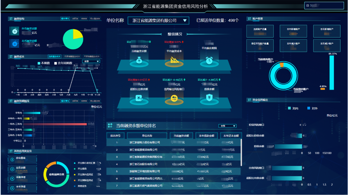 資(zi)(zi)金(jin)信(xin)用(yong)(yong)(yong)(yong)風險(xian)管(guan)理(li)(li)(li)系(xi)(xi)(xi)統(tong)分兩部(bu)(bu)分,一(yi)是部(bu)(bu)署(shu)于(yu)省國(guo)(guo)資(zi)(zi)委財務(wu)風險(xian)監測(ce)平(ping)(ping)臺下的(de)資(zi)(zi)金(jin)信(xin)用(yong)(yong)(yong)(yong)風險(xian)子系(xi)(xi)(xi)統(tong),應用(yong)(yong)(yong)(yong)于(yu)省國(guo)(guo)資(zi)(zi)委及各省屬(shu)企(qi)業(ye),旨(zhi)(zhi)在加強(qiang)國(guo)(guo)資(zi)(zi)國(guo)(guo)企(qi)資(zi)(zi)金(jin)信(xin)用(yong)(yong)(yong)(yong)風險(xian)監測(ce);二是部(bu)(bu)署(shu)于(yu)浙能(neng)(neng)集(ji)(ji)團(tuan)的(de)資(zi)(zi)金(jin)管(guan)理(li)(li)(li)系(xi)(xi)(xi)統(tong),旨(zhi)(zhi)在提升資(zi)(zi)金(jin)管(guan)理(li)(li)(li)精細化(hua)(hua)(hua)、集(ji)(ji)約化(hua)(hua)(hua)及智(zhi)能(neng)(neng)化(hua)(hua)(hua)水平(ping)(ping),提高資(zi)(zi)金(jin)運(yun)營(ying)效率,防(fang)范資(zi)(zi)金(jin)風險(xian)。到目(mu)前,國(guo)(guo)資(zi)(zi)委側(ce)系(xi)(xi)(xi)統(tong)已完(wan)成(cheng)17家省屬(shu)企(qi)業(ye)集(ji)(ji)團(tuan)推廣(guang),企(qi)業(ye)側(ce)系(xi)(xi)(xi)統(tong)已完(wan)成(cheng)浙能(neng)(neng)集(ji)(ji)團(tuan)約500家成(cheng)員單位(wei)推廣(guang)。歷經(jing)多(duo)次(ci)版本更迭,系(xi)(xi)(xi)統(tong)功能(neng)(neng)不(bu)斷(duan)完(wan)善,已實現賬戶(hu)全生命周期(qi)閉(bi)環管(guan)理(li)(li)(li)、融(rong)資(zi)(zi)業(ye)財一(yi)體化(hua)(hua)(hua)管(guan)理(li)(li)(li)、債務(wu)風險(xian)預警、資(zi)(zi)金(jin)信(xin)用(yong)(yong)(yong)(yong)輸(shu)出風險(xian)監測(ce)、大屏智(zhi)能(neng)(neng)化(hua)(hua)(hua)分析等(deng)功能(neng)(neng),切實提升省屬(shu)國(guo)(guo)資(zi)(zi)國(guo)(guo)企(qi)資(zi)(zi)金(jin)信(xin)用(yong)(yong)(yong)(yong)風險(xian)管(guan)理(li)(li)(li)水平(ping)(ping)。