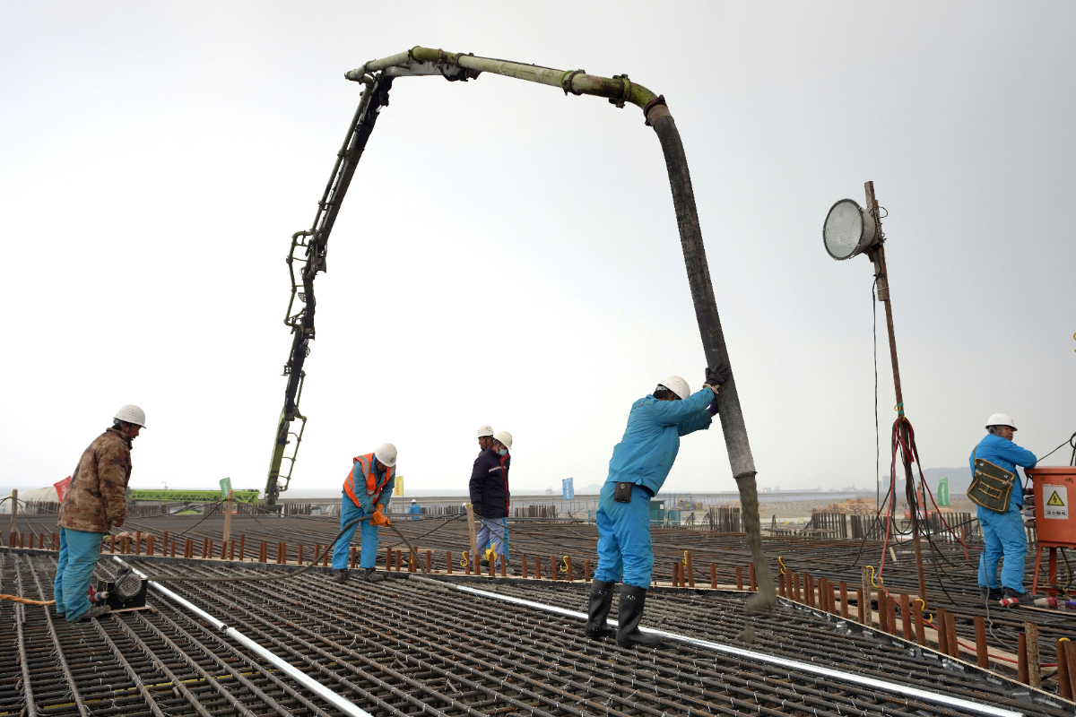 浙能(neng)六橫LNG接(jie)收(shou)站首罐(guan)承(cheng)臺第一(yi)方混凝(ning)土開始澆筑。 周衡平 攝
