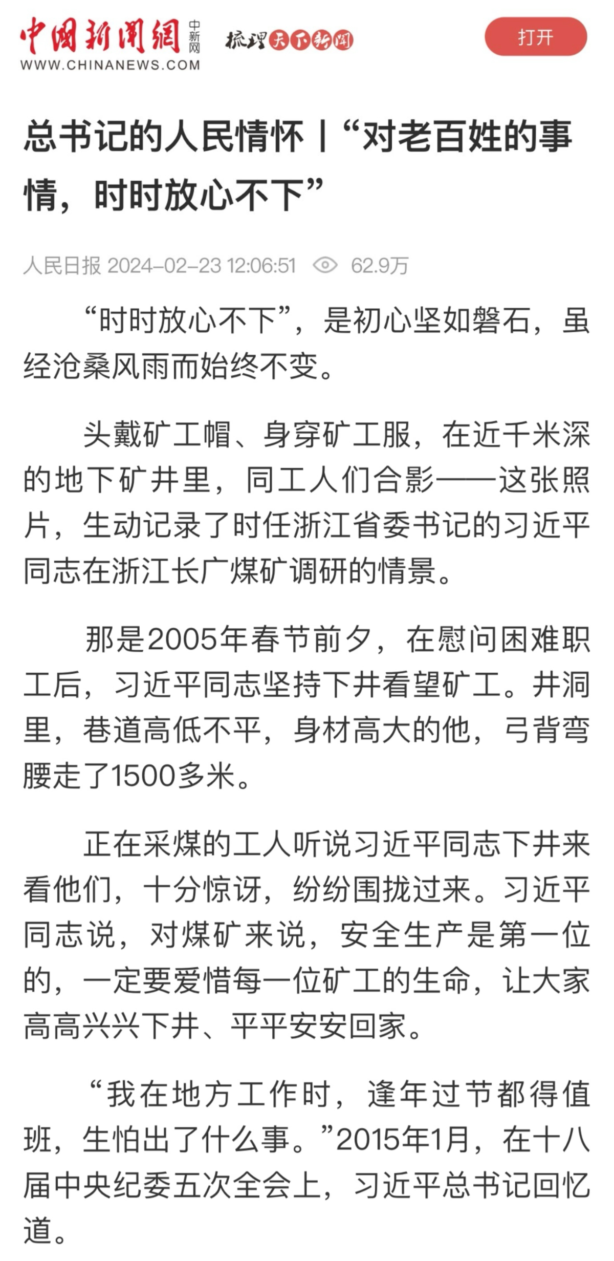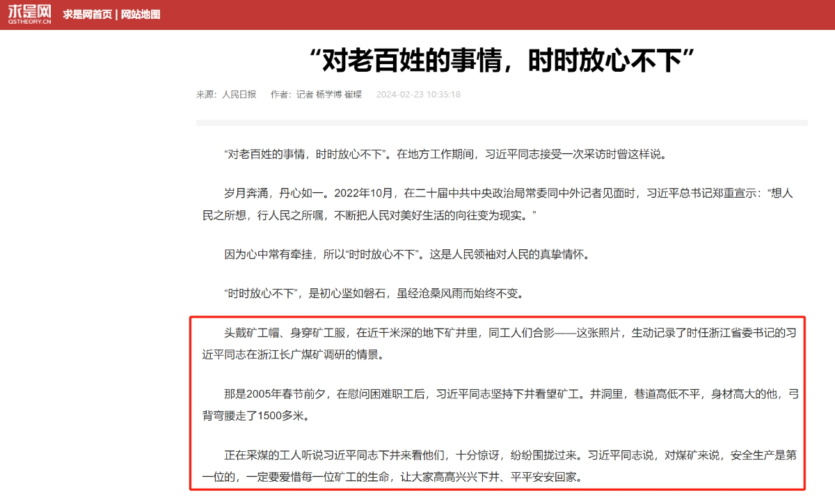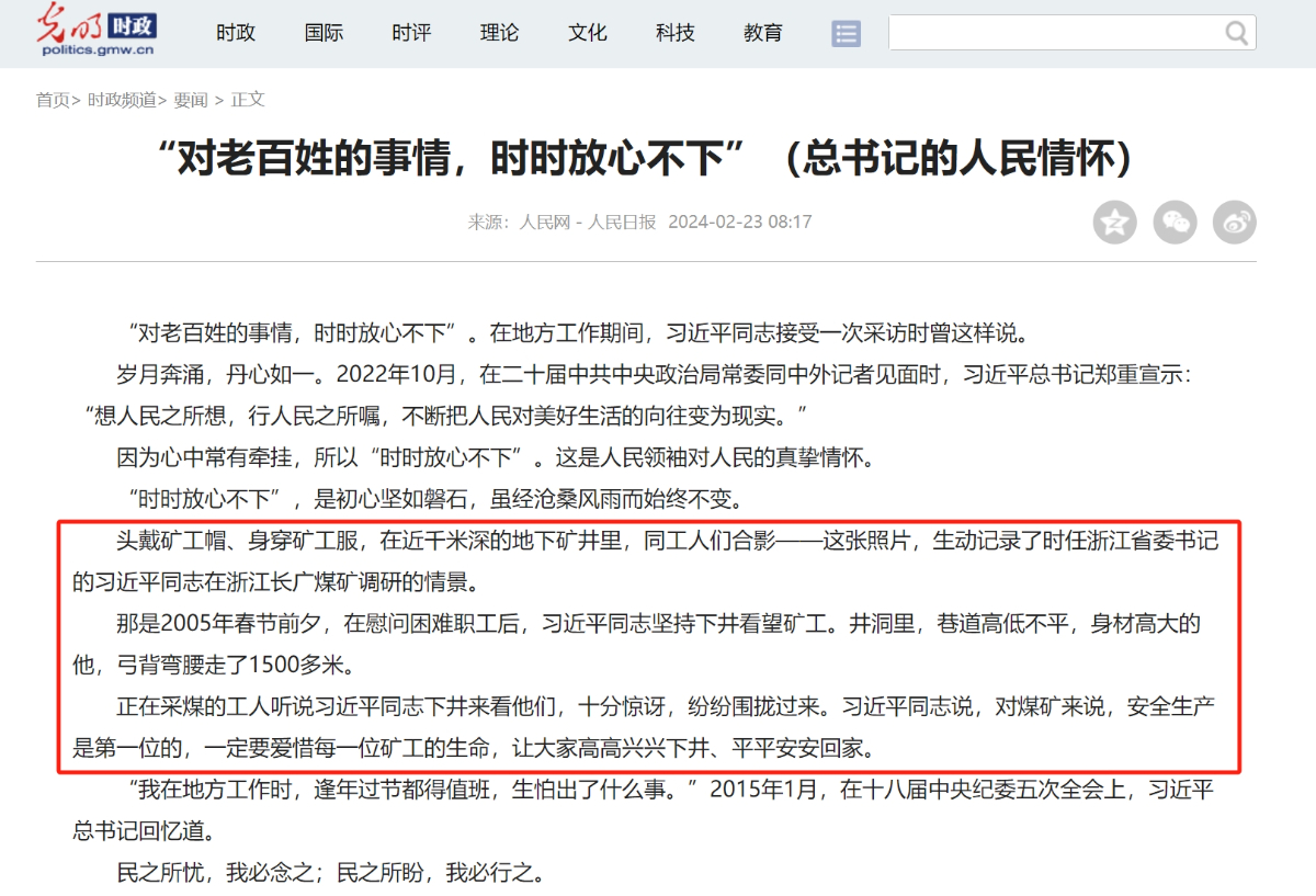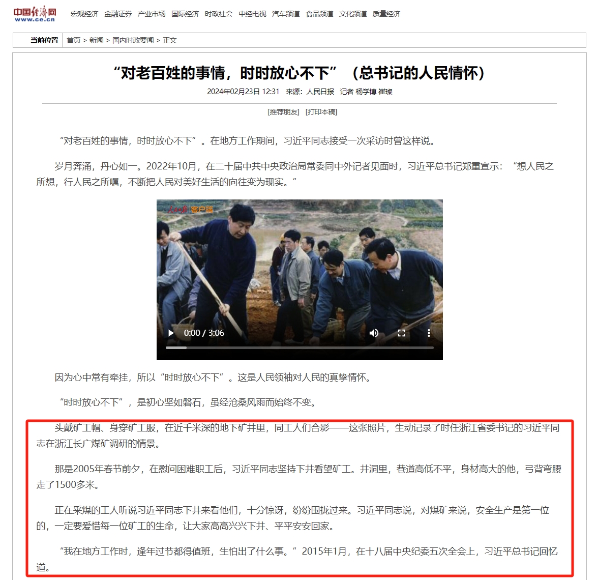 本網訊 2月23日,《人民日報》頭版頭條刊登《總書記的人民情懷|“對老百姓的事情,時時放心不下”》,光明網、求是網、中國新聞網、中國日報中文網、中國經濟網等多家央媒頭版轉載。“以時時放心不下的責任感、積極擔當作為的精氣神為黨和人民履好職、盡好責”,這是習近平總書記對廣大黨員、干部的殷切囑托,也是一個百年大黨走好新的趕考之路的底氣所在。 文中記錄了習近(jin)平總書(shu)記的調研(yan)(yan)故事,其中第一個講述(shu)的就是時任(ren)浙江省委書(shu)記習近(jin)平同志到長廣煤礦調研(yan)(yan)的故事。