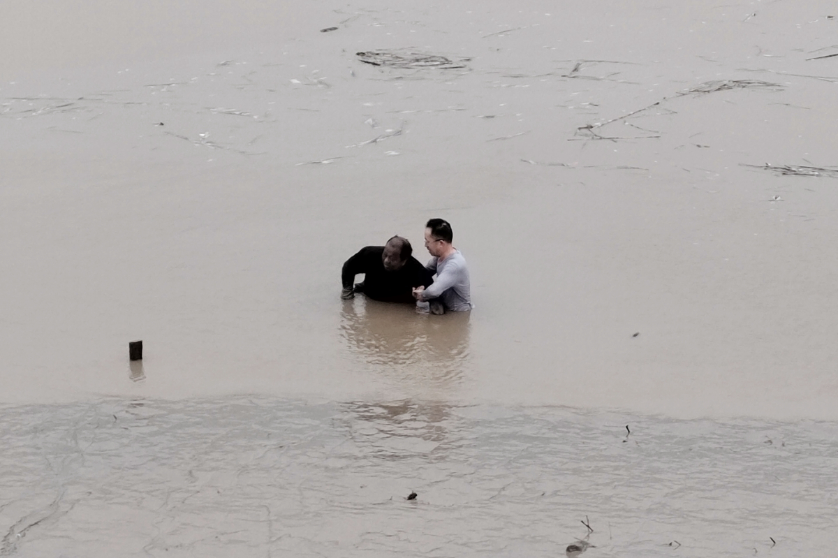 浙石油銷售公司黨員(yuan)何明遠跳江(jiang)勇救落水群眾。 謝(xie)嫣然 提供