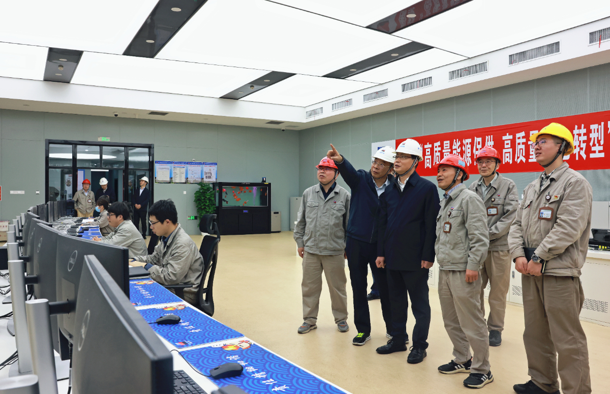 劉盛輝一行(xing)到(dao)樂電三期集控(kong)室了解機組運行(xing)等情況(kuang)。樓(lou)瑋瑤 攝