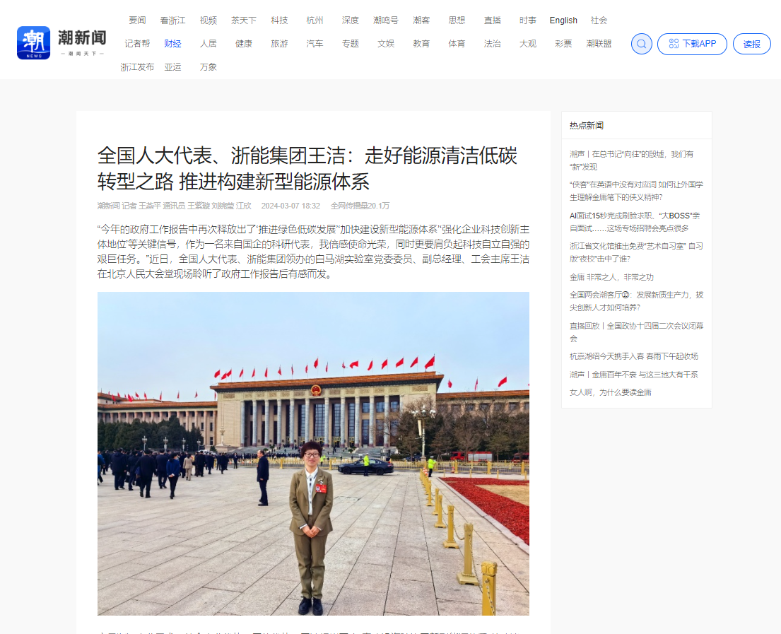 潮新(xin)聞客戶(hu)端報道《全國(guo)人大代表、浙能集團王(wang)潔:走好(hao)能源(yuan)清潔低碳轉型之(zhi)路 推(tui)進構建新(xin)型能源(yuan)體系》。 潮新(xin)聞客戶(hu)端 圖