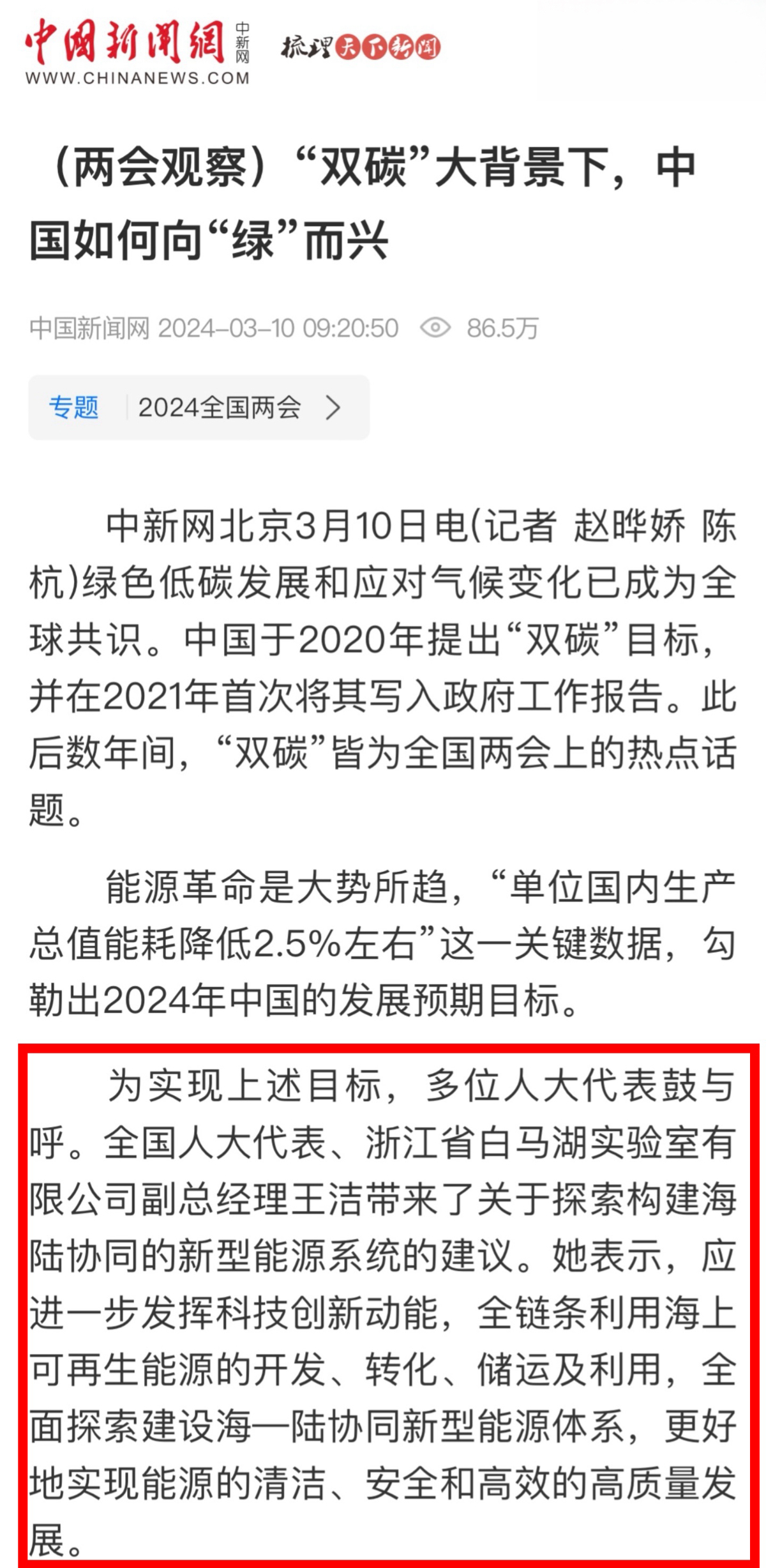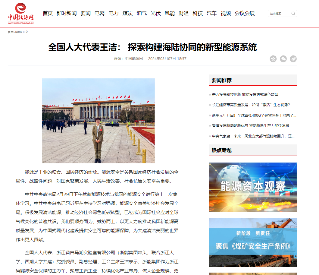 中國(guo)能源(yuan)網報道《全國(guo)人大代(dai)表王潔: 探索構(gou)建海(hai)陸協同的新型能源(yuan)系(xi)統》。 中國(guo)能源(yuan)網 圖